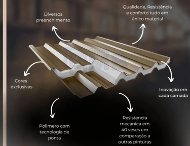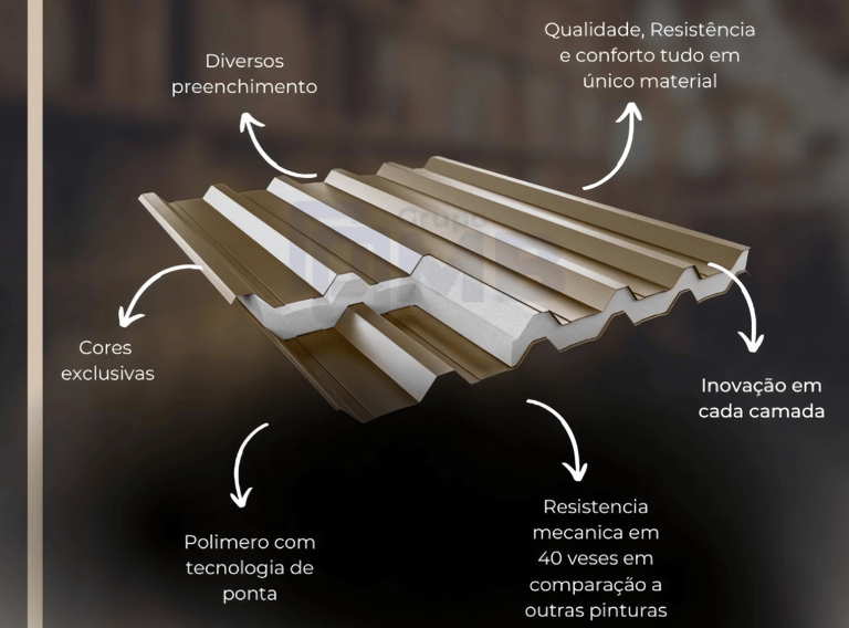 Outro diferencial da construtora é o uso de telhas sanduíche, que combinam alta performance térmica e estrutural. Essas telhas são compostas por camadas de material isolante (como poliuretano, EPS ou lã de vidro) entre duas chapas metálicas, garantindo maior durabilidade e eficiência energética. Elas são ideais para reduzir o consumo de ar condicionado e aquecimento, além de serem resistentes a intempéries.